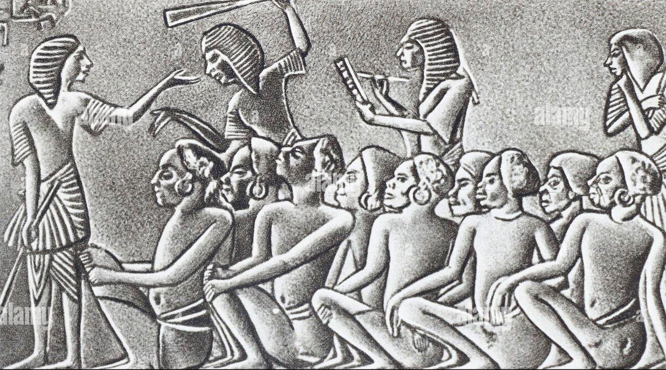 He started by showing an Egyptian bass- relief carved in 2,900 BC, depicting Egyptian slave-traders wielding whips over a troop of Nubian captives in a slave market. It leaves no room for doubt about what is going on.